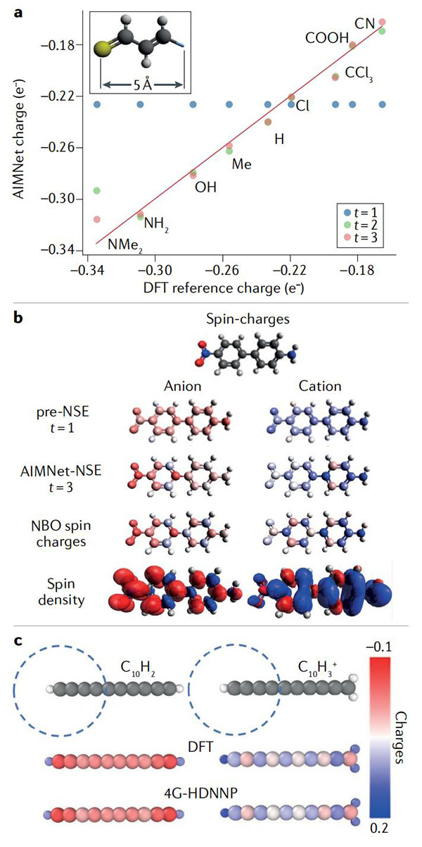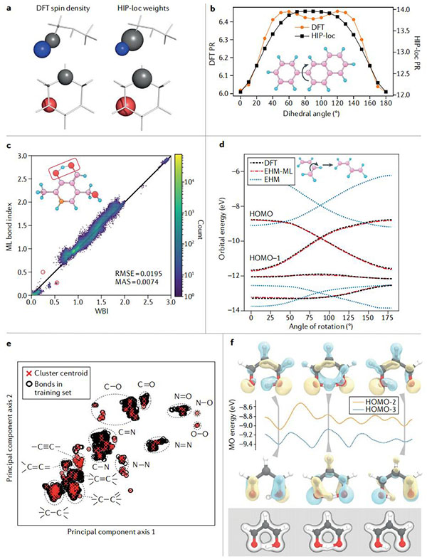 在此,美国洛斯阿拉莫斯国家实验室Sergei Tretiak教授(通讯作者)全面总结了基于ML评估化学性质的发展,例如部分原子电荷、偶极矩、自旋、电子密度、化学键以及获得简化的量子力学描述。同时,作者概述了几种现代神经网络架构,以及它们的预测能力,通用性和可转移性,并说明了它们对各种化学性质的适用性。此外,作者还强调了学习的分子表示类似于量子力学类似物,证明了模型捕获基础物理学的能力,以及讨论了ML模型如何描述非局部量子效应。最后,作者编制了一份可用的ML工具箱列表,总结了未解决的挑战和展望了未来的发展。总结的趋势表明,本领域的发展正在向由ML增强的基于物理的模型发展,其伴随着新方法的开发以及用户友好的ML化学框架正在快速增长。