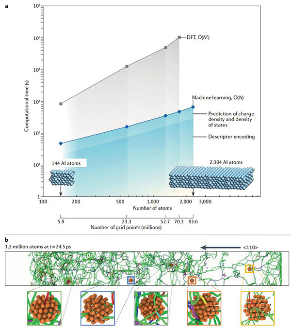 (a)密度泛函理论(DFT)与机器学习(ML)的比例比较;
