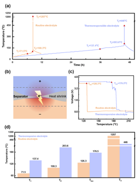 (1)设计了一种具有热响应特性的新型电解质体系,极大地提高了LMBs的热安全性;