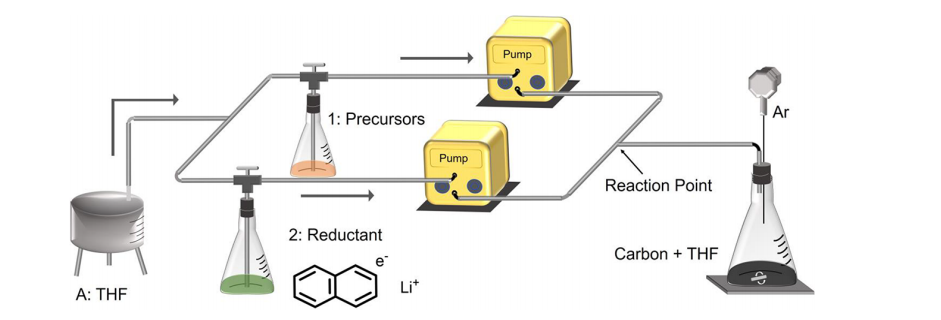 相关研究工作以“Continuous-Flow Reactor Synthesis for Homogeneous 1 nm-Sized Extremely Small High-Entropy Alloy Nanoparticles”为题发表在国际顶级期刊Journal of the American Chemical Society上。