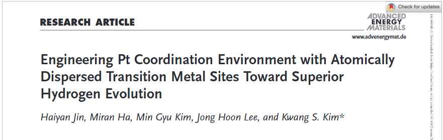 近日,蔚山科学技术院Kwang S. Kim教授等人成功合成由负载在钒(V)和氮(N)共掺杂的碳(VNC)(表示为Pt@VNC)表面上的Pt-SAs、Pt-Pt/V双原子和小簇组成的原子分散催化剂。 Pt@VNC展现出非凡的HER催化活性和稳定性。相关的研究成果以“Engineering Pt Coordination Environment with Atomically Dispersed Transition Metal Sites Toward Superior Hydrogen Evolution”为题发表在Advanced Energy Materials上。