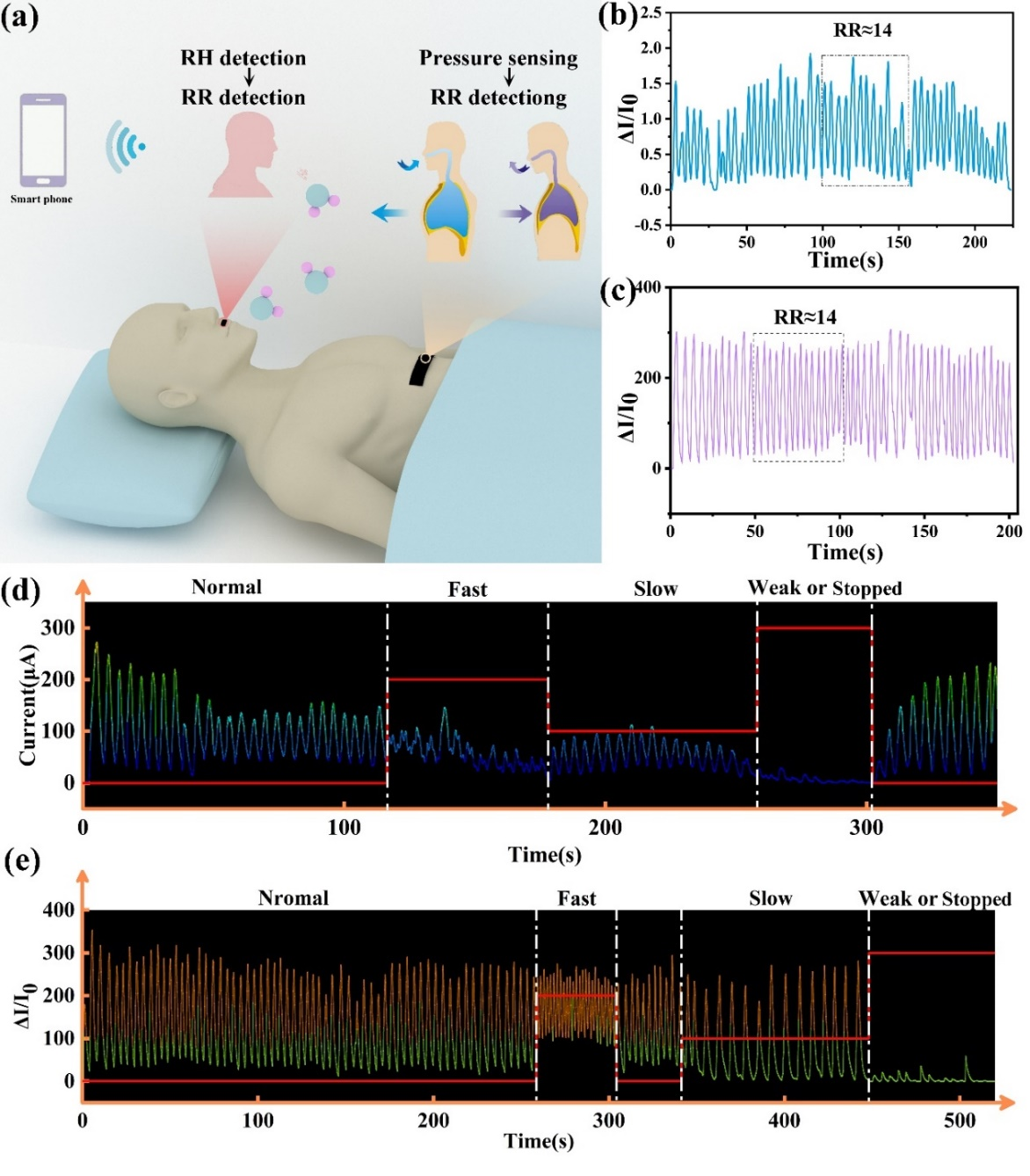 随着生活方式的变化,工作压力逐渐变大,睡眠障碍逐渐成为一个突出的健康问题。睡眠呼吸暂停综合征(Sleep Apnea Syndrome, SAS)是一种常见的睡眠障碍,长期发生睡眠呼吸暂停会诱发高血压、心力衰竭等心血管疾病,严重威胁人类健康,准确可靠的呼吸检测是有效诊断睡眠质量迫切需要的。但是多导睡眠图(Polysomnography, PSG)作为诊断SAS的金标准存在成本较高、检查耗时且舒适性较差等问题。因此,基于柔性可穿戴传感技术开发家用呼吸监测系统有可能彻底改变生活监测,对于促进SAS检测技术的发展有重要意义。