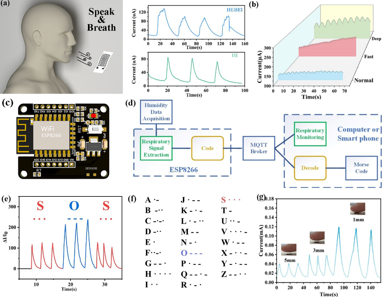 近日,河北工业大学的胡宁、赵丽滨和王子莹研究团队协同华中HTH官网地址 大学同济医院朱皓提出了一种基于生物兼容的细菌纤维素/石墨烯气凝胶的多功能集成的低功耗无线柔性传感平台,该平台不仅可以用于监测生理活动和呼吸信号,还可以用于基于莫尔斯码的无线加密通信。结合石墨烯优异的导电性和细菌纤维素的高力学性能,三维多孔石墨烯/ 细菌纤维素生物气凝胶具有出色的压力传感性能,宽工作范围(20 pa至30 kPa),高灵敏度高和良好的循环稳定性。此外,氧化石墨烯/细菌纤维素复合材料具有优异的湿度传感性能,实现了呼吸波形和频率的实时监测。此外,基于esp-01设计出低功耗无线传感平台,在睡眠期间佩戴无线柔性压力和湿度传感器可以同步为SAS提供诊断数据,并在多终端进行显示。本文报道的无线传感器系统在医学应用领域具有潜在的适用性,结合人工智能算法及柔性电路设计,可为医疗物联网领域提供更多的选择。