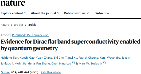 原文详情:Evidence for Dirac flat band superconductivity enabled by quantum geometry ( Nature 2023, 614, 440-444)