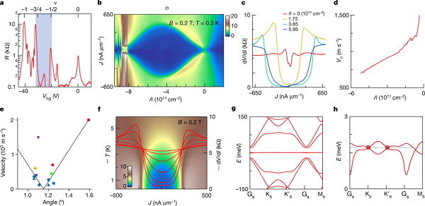 图1 在θ = 1.08°、B = 0.2 T以及T = 0.3 K时tBLG的正常状态传输 © 2023 Springer Nature