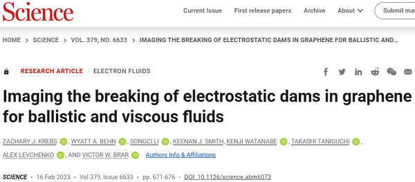 原文详情:Imaging the breaking of electrostatic dams in graphene for ballistic and viscous fluids (Science 2023, 379, 671-676)