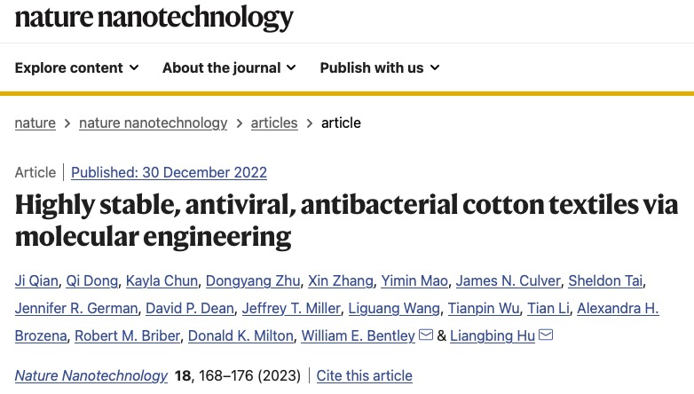 Qian, J., Dong, Q., Chun, K. et al. Highly stable, antiviral, antibacterial cotton textiles via molecular engineering. Nat. Nanotechnol. 18, 168–176 (2023). https://doi.org/10.1038/s41565-022-01278-y