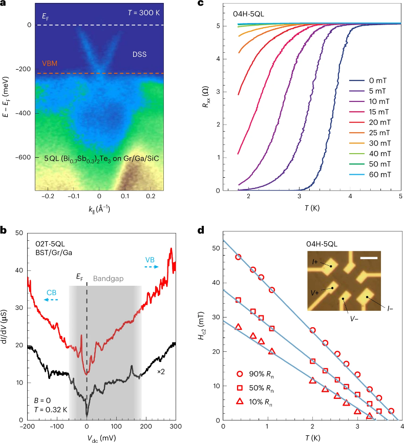 图2 BST/Gr/Ga异质结构中共存的狄拉克表面态及超导性©2023 Springer Nature