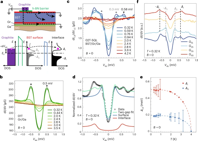 图3 BST/Gr/Ga异质结构的超导近邻效应 ©2023 Springer Nature