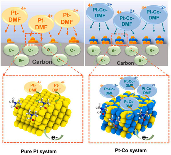 相关研究成果以“Electrochemical synthesis of monodispersed and highly alloyed PtCo nanoparticles with a remarkable durability towards oxygen reduction reaction”为题发表在Applied Catalysis B: Environmental上。三、【核心创新点】