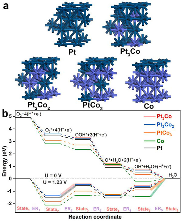 (a)利用DFT建立了不同表面Pt:Co原子比的模型;