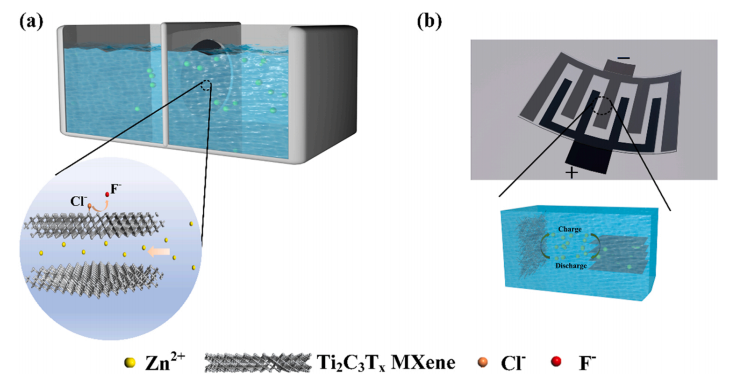 图1. MXene/ZnCl2电极的制备过程和微型ZHSCs的结构示意图© 2022 Elsevier Ltd