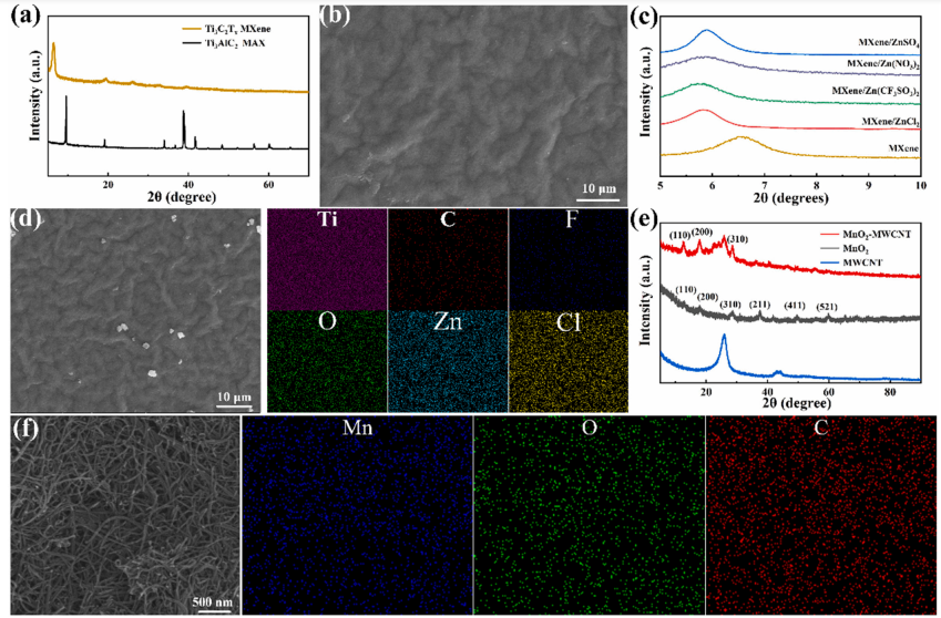 图2. MXene/ZnCl2和MnO2-MWCNTs的表征© 2022 Elsevier Ltd