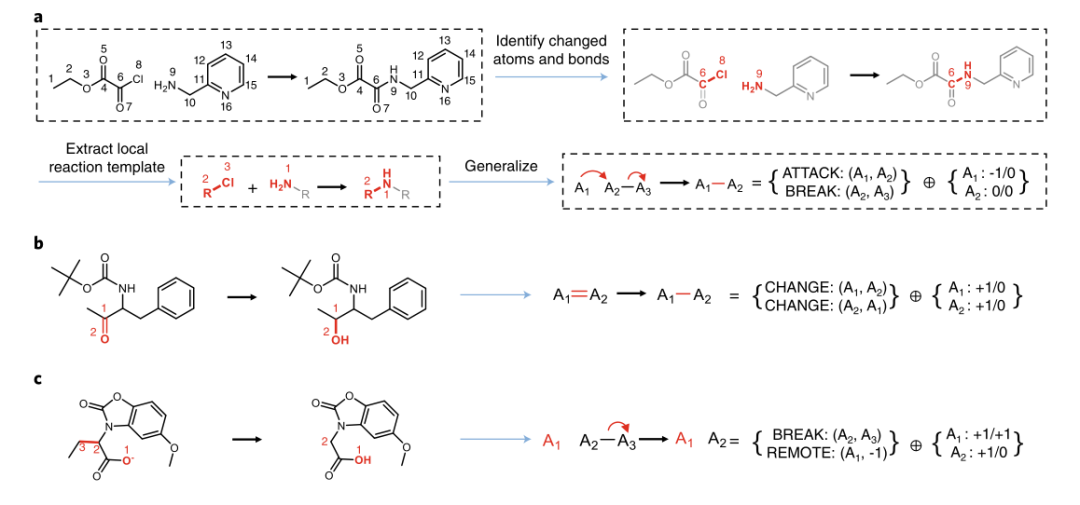 在此,韩国国际科学技术院化学与生物分子工程系Yousung Jung教授团队设计了一种广义反应模板(generalized reaction template, GRT),这是一种仅通过原子映射法描述反应前后原子构型局部变化,而没有特定原子类型或官能团信息的反应模板。基于该模板,研究设计了一种化学驱动的图神经网络机器智能平台来预测反应产物,研究人员将其命名为LocalTransform。与专业化学家相似的是,LocalTransform能够通过识别反应中心来预测反应结果,并根据局部化学环境变化然后通过全局注意机制的选择性来识别反应原子。最终反应结果由模板分类器进行预测,该分类器可为化学反应中心提出最可能的构型变化,然后实现精准的结果预测。此外,研究人员还总结了LocalTransform在预测有机反应结果方面的三个重要突破: