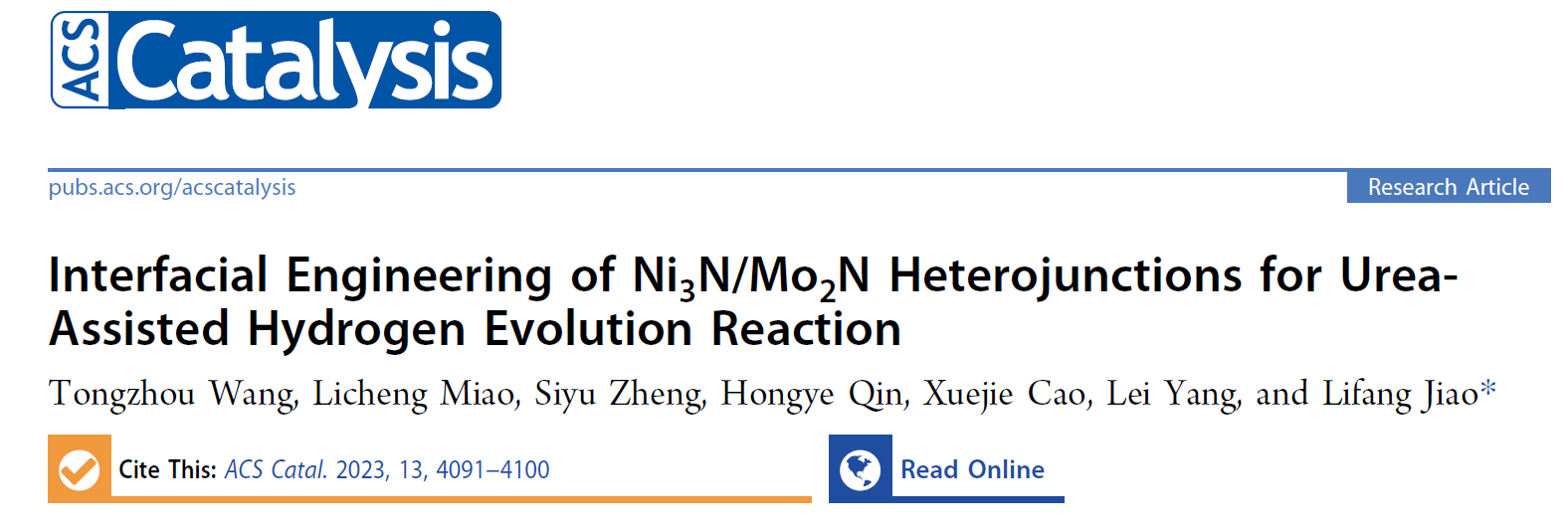 1、 全 文 速 览:1)通过水热和氮化的方法制备了Ni3N/Mo2N异质结构的纳米片阵列,该催化剂具有优异的HER和UOR性能;
