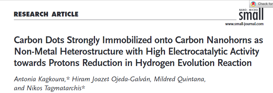 近日,希腊理论和物理化学研究所 Nikos Tagmatarchis团队成功将碳点(CDs)原位生长在碳纳米角(CNHs)上实现全碳非金属之间的异质界面作用(CDs/CNHs nanoensemble)。CDs/CNHs nanoensemble表现出对HER的高催化活性。相关的研究成果以“Carbon Dots Strongly Immobilized onto Carbon Nanohorns as Non-Metal Heterostructure with High Electrocatalytic Activity towards Protons Reduction in Hydrogen Evolution Reaction”为题发表在Small上。