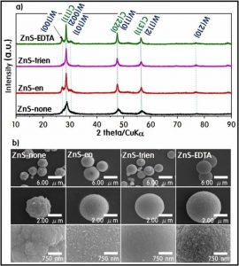 - 研究了乙二胺衍生物介导的高浓度C、N、O共掺杂Zn、S共缺陷ZnS颗粒。
