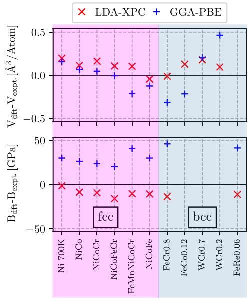莱奥本研究有限公司材料中心的Franco Moitzi等研究者提出了一种基于相干势近似(CPA)的计算成本低廉的方法,解决了上述基于DFT建模的局限性,该方法提供了一种非常一致的方式来描述VC模型下有效合金的特性。该方法中,通过使用元素特定的修正来调整平衡体积,同时也改善了其他平衡性质。并且该方法还考虑了磁介导和声子自由度介导的有限温度效应,这对于描述室温以上SSS的温度依赖性尤为重要。相关研究工作以“Accurate ab initio modeling of solid solution strengthening in high entropy alloys”为题发表在国际顶级期刊Physical Review Materials上。