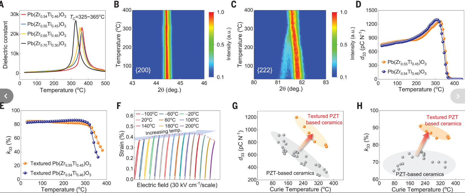 相关研究工作以“Lead zirconate titanate ceramics with aligned crystallite grains”为题刊登在《Science》上。