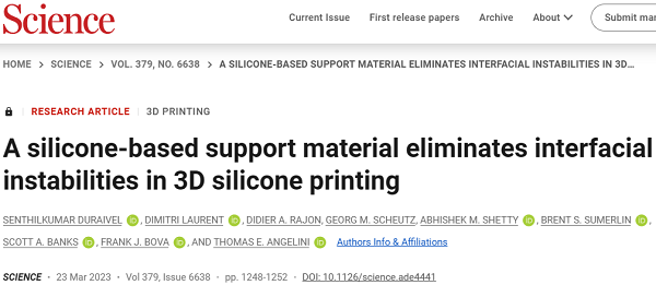 原文详情:A silicone-based support material eliminates interfacial instabilities in 3D silicone printing (Science 2023, 379, 1248-1252)