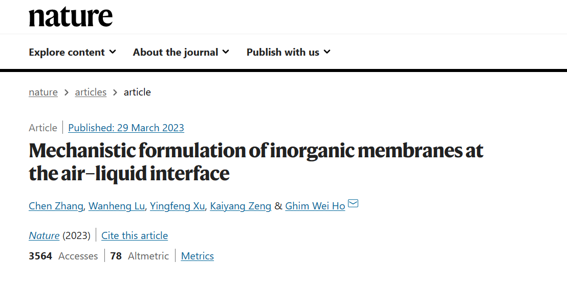 原文详情:Zhang, C., Lu, W., Xu, Y. et al. Mechanistic formulation of inorganic membranes at the air–liquid interface. Nature (2023).