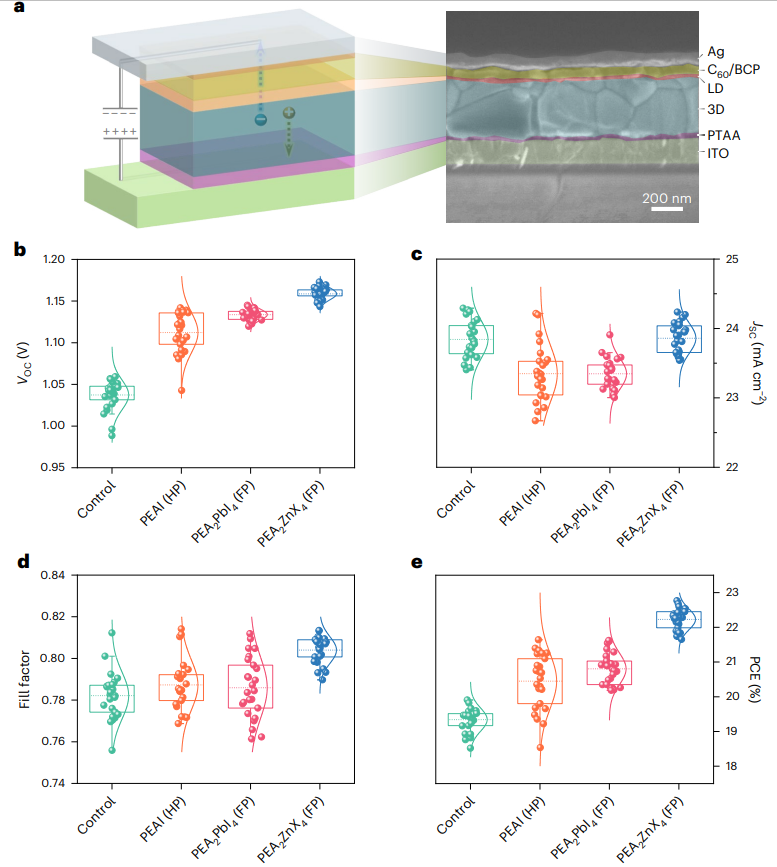 图2.LD封盖材料的器件结构和光伏参数演变。© 2023 Nature Energy