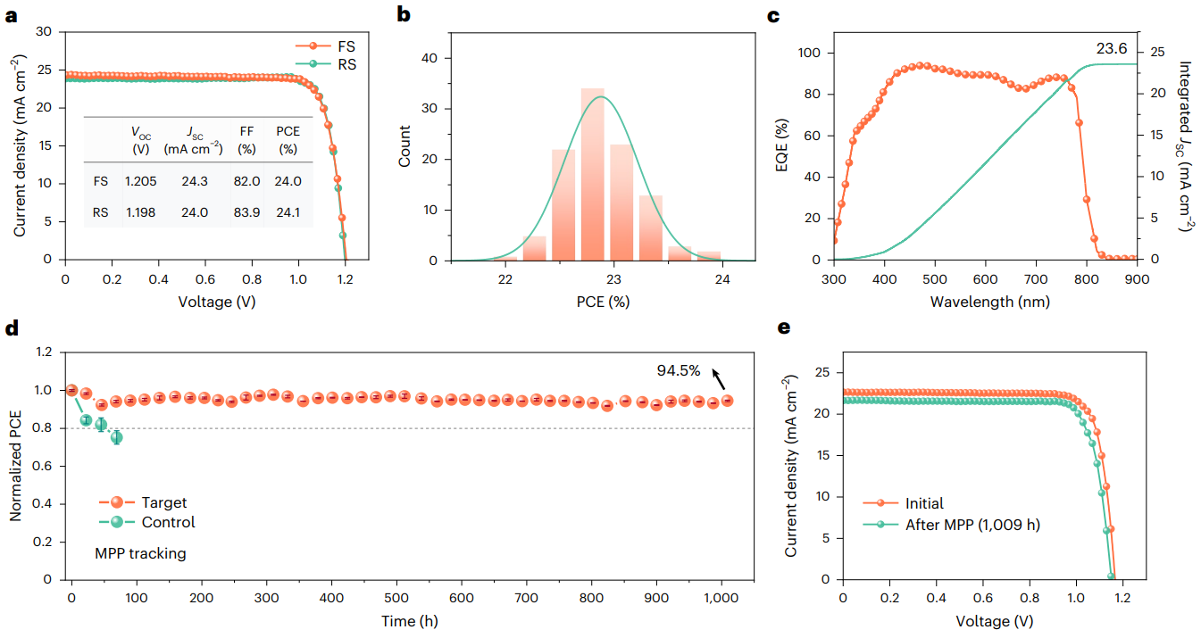 图4.器件性能和稳定性。© 2023 Nature Energy