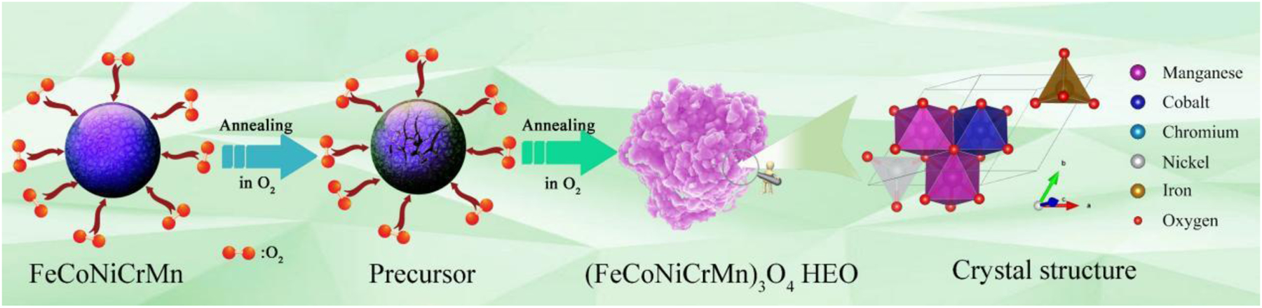 图1 (FeCoNiCrMn)3O4 HEO的合成过程示意图 © 2022 Elsevier Ltd.