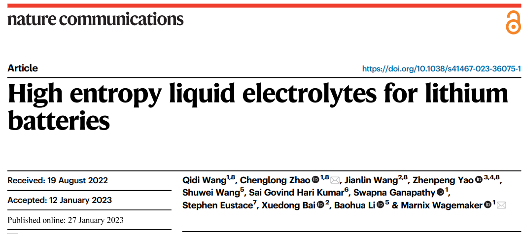 高熵(HE)合金通常由五种或五种以上的主元素组成,有利于形成具有简单结构的固溶相。对于给定的系统,构型熵会随着主成分的引入而增加,从而降低吉布斯自由能。然而,熵的增加如何影响液体的热力学/动力学性质是不明确的。HE类材料中的一个新的研究方向是液体电解液,它在电池电极之间起离子导电膜的作用。然而,迄今为止,HE电解液的基本性质尚未被研究。熵的增加是如何影响包括氧化还原稳定性、离子电导率、电荷转移和固态电解质界面相(SEI)形成在内的主要电解液功能特性,这些研究很有意义。由于有可能通过熵来调节电解液的性质,并且缺乏这方面的知识,系统地研究HE电解液的性质及其对锂电池中相关工艺的影响很有必要。