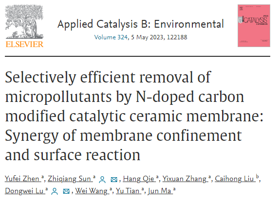 哈尔滨工业大学孙志强最新Appl. Catal. B Environ:氮掺杂碳改性催化陶瓷膜选择性高效去除微污染物剂