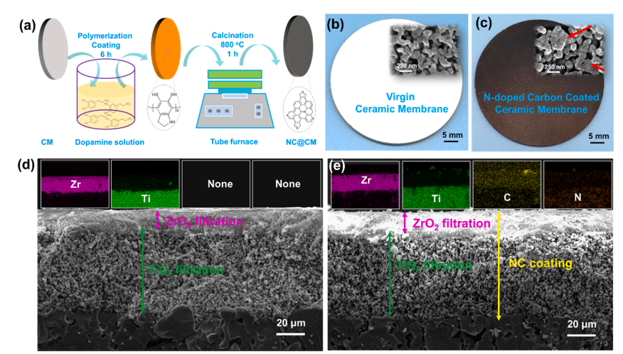 - 本工作提出了一种新颖的聚合-涂覆同步法制备具有均匀催化层和足够活性位点的氮掺杂碳改性陶瓷膜(NC@CM),显著加快了表面反应主导的氧化过程。