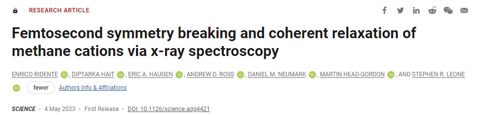 最新Science:利用X射线光谱研究甲烷阳离子的飞秒对称性破缺和相干弛豫