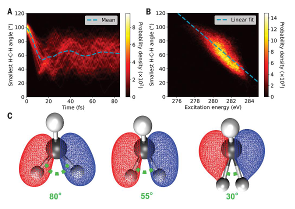 图2. CH4+离子1s→SOMO跃迁的时间演化© 2023 AAAS