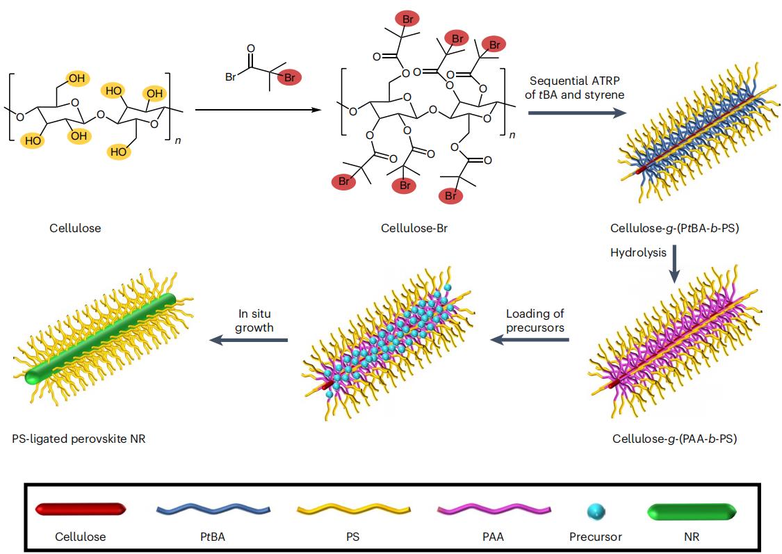 图1. 合成PS包覆的钙钛矿纳米棒示意图。©2023 Springer Nature