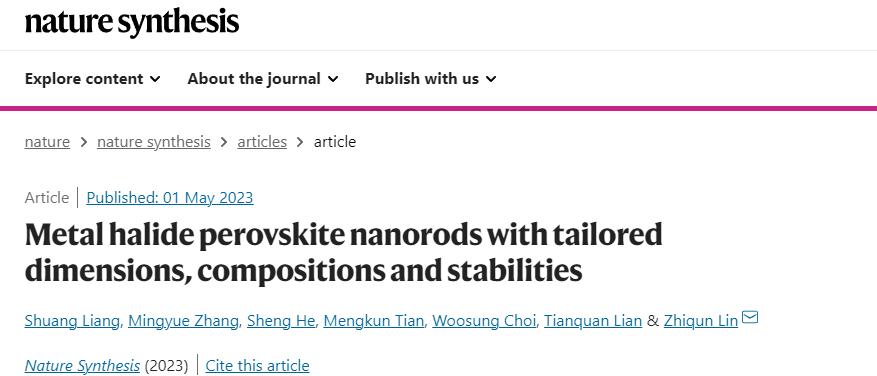 原文详情:Metal halide perovskite nanorods with tailored dimensions, compositions and stabilities. Nat. Synth (2023).