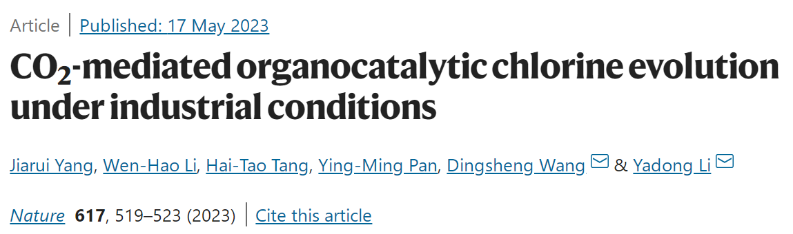 原文详情:Yang, J., Li, WH., Tang, HT. et al. CO2-mediated organocatalytic chlorine evolution under industrial conditions. Nature 617, 519–523 (2023). https://doi.org/10.1038/s41586-023-05886-z