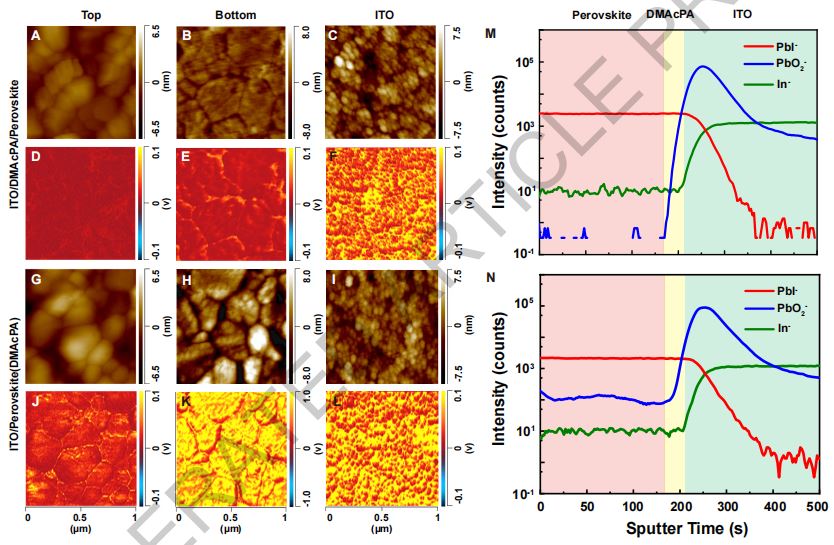发明基于二甲基吖啶的分子掺杂工艺,构建了一个匹配良好的p-钙钛矿/ITO接触,实现了晶界的全面钝化,使得太阳能电池的稳定性和转化功率大幅提高。