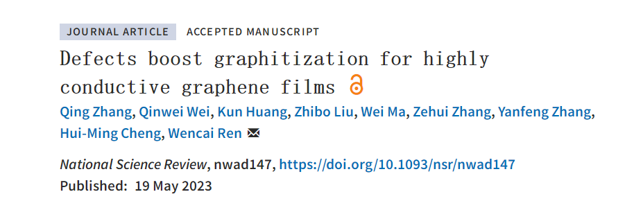 原文详情:Defects boost graphitization for highly conductive graphene films. National Science Review, nwad147.