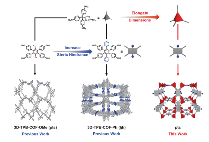 三维COFs合成新策略:利用位阻效应调节三维共价有机骨架的拓扑结构
