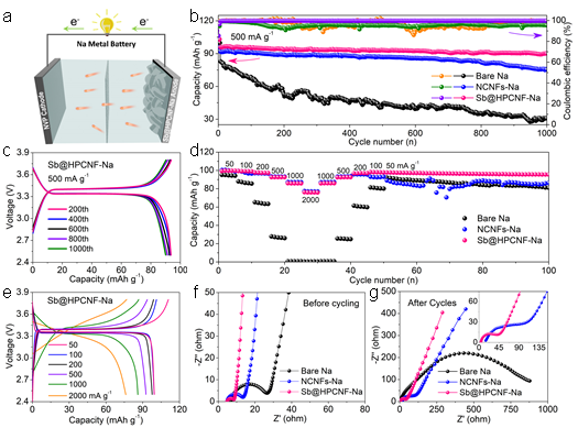 要点:对称电池性能测试表明,Sb@HPCNF基底对于抑制Na枝晶及界面副反应均具有出色效果