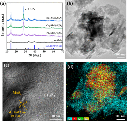 近日,华东理工大学化工学院刘纪昌教授团队系统地探究了不同过渡态金属(Ru、Co和Ni)单原子负载MoS2对其助催化提升g-C3N4光催化产氢性能的影响,为开发更多高效稳定的单原子基光催剂奠定基础。结构表明,不同Ru、Co或Ni单原子金属负载的SA-MoS2/g-C3N4光催化剂均具有明显增强的光催化产氢活性,优化的Ru1-MoS2/g-C3N4光催化剂具有高达11,115 μmol/h/g的产氢性能,相比不负载单原子金属的MoS2/g-C3N4光催化剂提升了5倍。实验和理论计算分析表明,其光催化性能的提高可归因于具有明确配位单原子配位结构和丰富产氢活性位点的SA-MoS2与g-C3N4纳米片之间的协同效应,有利于光生电荷的快速传输与分离以及产氢半反应的进行。相关成果以“Transition-Metal Single Atom Anchored on MoS2 for Enhancing Photocatalytic Hydrogen Production of g-C3N4 Photocatalysts”为题发表在在国际权威期刊ACS Appl. Mater. Interfaces。
