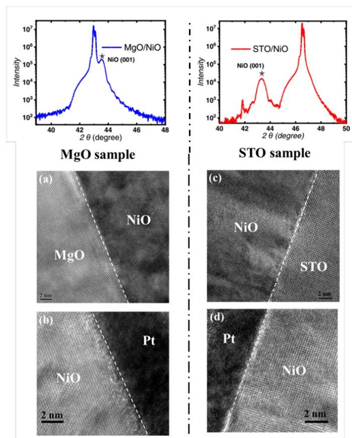 图1:NiO薄膜在不同衬底上的结构及形貌。
