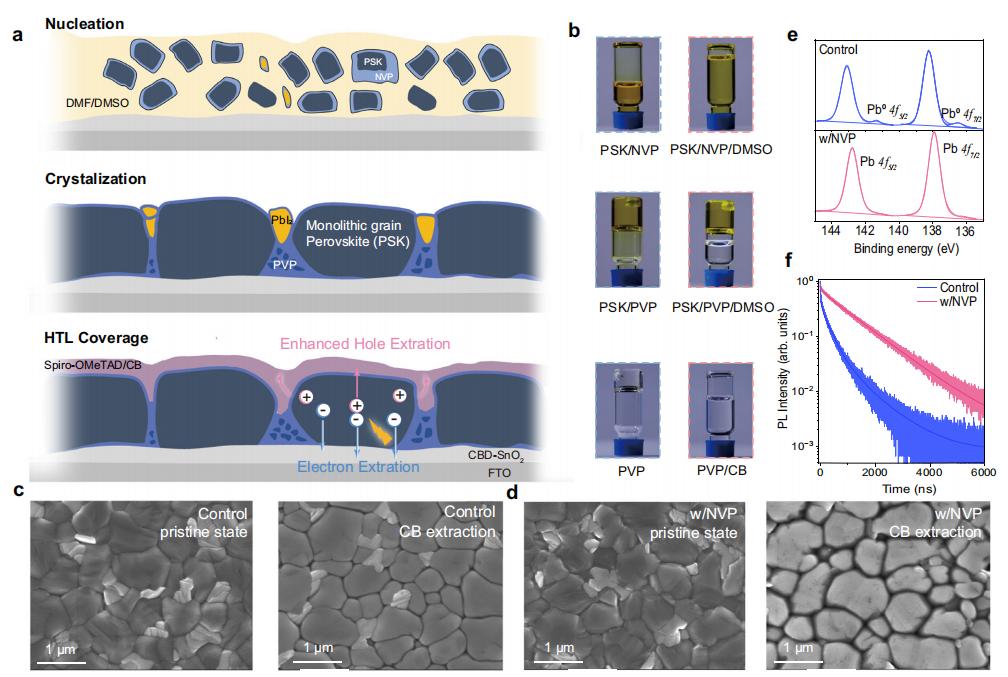 通过热聚合物的模板效应,提升了钙钛矿薄膜的结晶性降低非辐射复合,构建了钙钛矿和HTL间的榫卯结构增强空穴抽取,最终大幅提升了钙钛矿太阳能电池的效率。