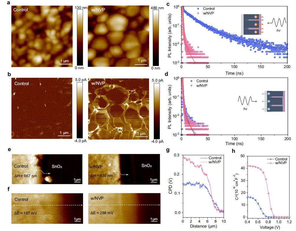 图3. 参比薄膜和钙钛矿/NVP薄膜的光电性能。©2023 The Authors