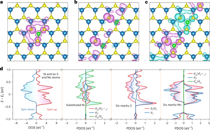 图4 Ni1/MoS2铁磁性的起源。©2023 Springer Nature
