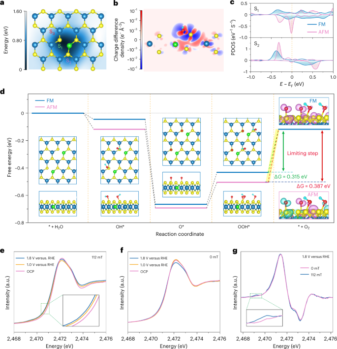 图3用于 OER 和水分解的铁磁性 Ni1/MoS2 的巨大磁场增强效应。©2023 Springer Nature