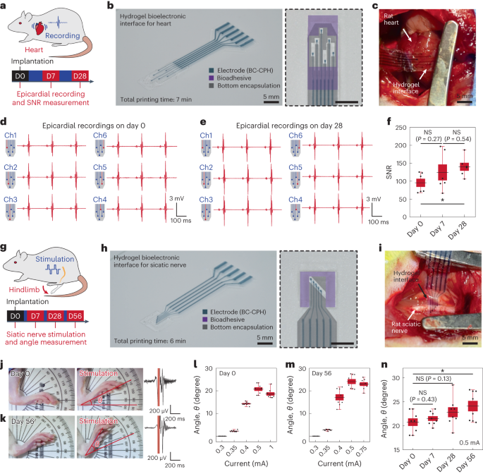 综上所述,作者提出的这种双连续导电聚合物水凝胶解决了导电水凝胶的难题,BC-CPH为类组织生物电子界面提供了一种很有前途的材料。在BC-CPH的独特优势下,作者通过3D打印制备了单片全水凝胶生物电子界面,能够长期高效地进行电生理刺激,并在大鼠模型中记录多种组织和器官。这项工作可能为水凝胶生物电子学提供一个多功能的工具和平台,不仅可以实现机器和生物系统之间更好和更快速的电接口,还可以在组织工程和再生医学中广泛应用BC-CPH,加快生物医学的发展。