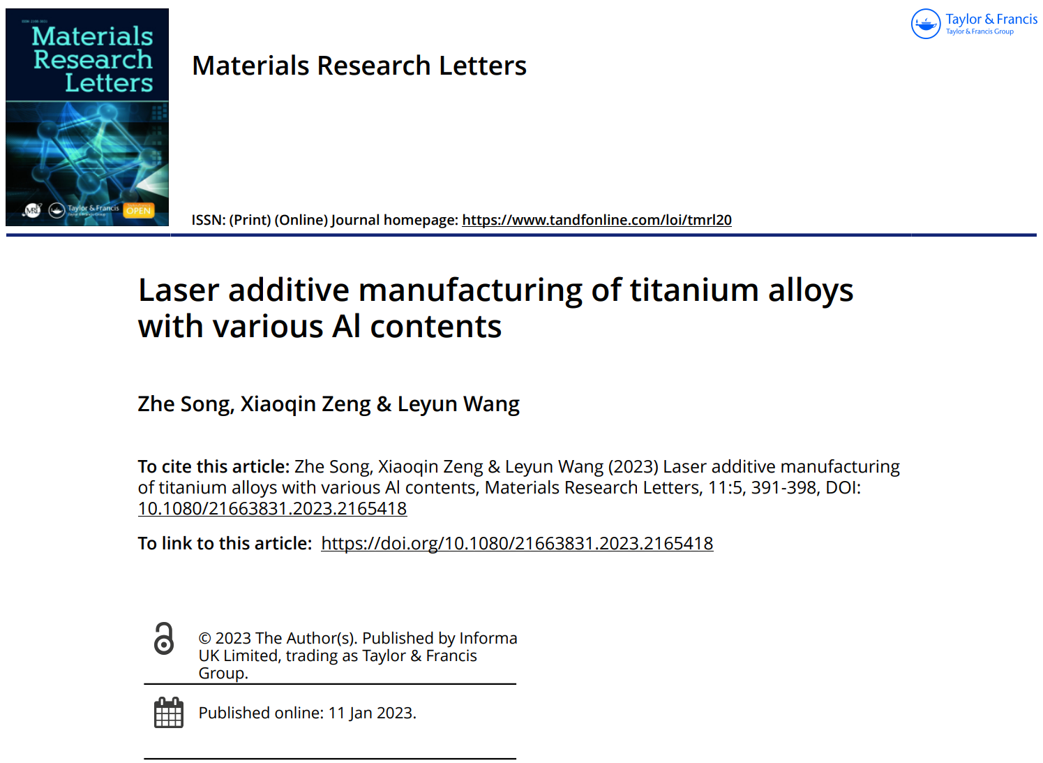 上海交通大学材料科学与工程学院王乐耘团队从钛合金的微观变形机理出发,通过粉末预合金化来调控钛合金中铝元素的含量,设计了Ti-4Al-4V(Ti44)和Ti-8Al-4V(Ti84)两种合金,研究了Al含量对LPBF Ti-xAl-4V合金(x = 4,6,8, wt.%)显微组织和力学性能的影响。结果表明铝含量越高,材料的强度越高。Ti44和Ti84合金均表现出比Ti64更高的加工硬化值和均匀延伸值。这一结果归因于Ti44中多种滑移模式的激活和Ti84中更不均一的微观结构。相关研究成果以“Laser additive manufacturing of titanium alloys with various Al contents”为题发表在国际著名期刊Materials Research Letters上。