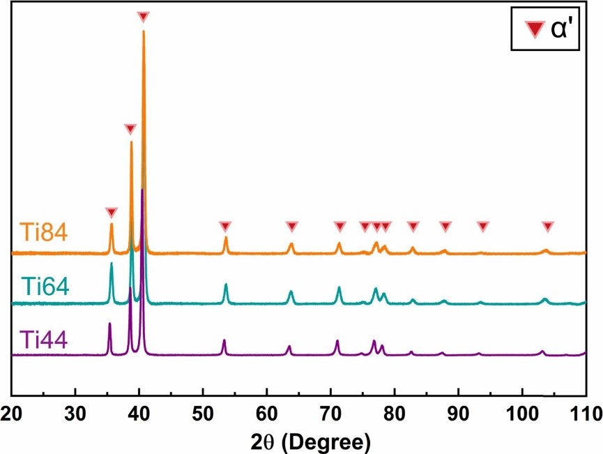 图1 Ti44, Ti64和Ti84的XRD谱图©2023 The Author(s)