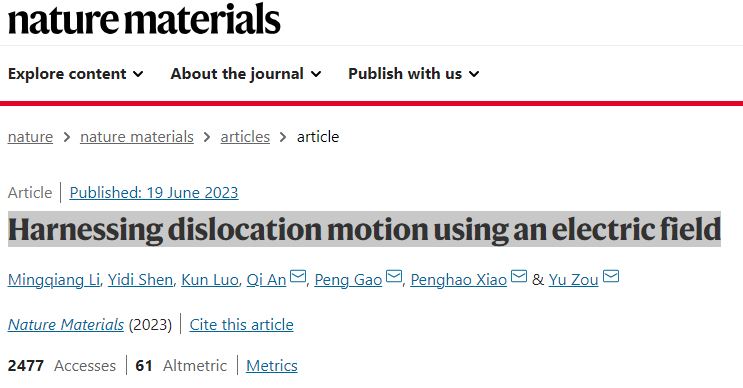 首次利用电场人工操纵位错的运动,并揭示了位错的电荷特性,开辟了调节位错相关特性的可能性。